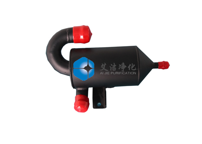 艾潔凈化生產(chǎn)的旋風式油氣分離器是讓氣液混合氣經(jīng)過切向進氣道或是螺旋進氣道進入分離器內(nèi),使混合氣在分離器內(nèi)旋轉(zhuǎn)運動,以此產(chǎn)生離心力來實現(xiàn)油滴的分離,它的分離機理與主動離心式油氣分離器相同,只是不需外界提供動力。